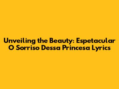 Unveiling The Beauty: 'Espetacular O Sorriso Dessa Princesa' Lyrics